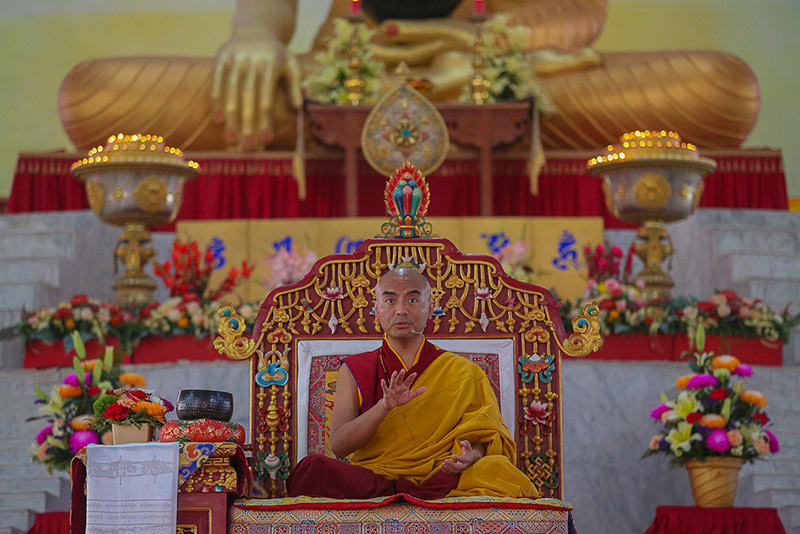 Rinpoche began by reminding everyone that the motivation of all Buddhist practice should be bodhichitta— to be able to bring ultimate benefit to sentient beings as limitless as space. They all possess the buddha nature but fail to recognize this because of ignorance, which is the result of karma. They wander in the three realms and six classes of saṃsāra and though suffering is but a dream, they create suffering, he said. We meditate and listen to the dharma in order to bring them to the state of buddhahood. Using this as the basis for the first meditation of the session, Mingyur Rinpoche instructed everyone to adopt the seven-point meditation posture and reflect on bodhichitta.