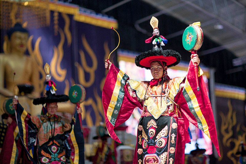 Because it takes so long and requires so much energy, the dance was punctuated by short breaks during which the dancers were fed saffron rice and rich Tibetan butter tea to keep their strength up.