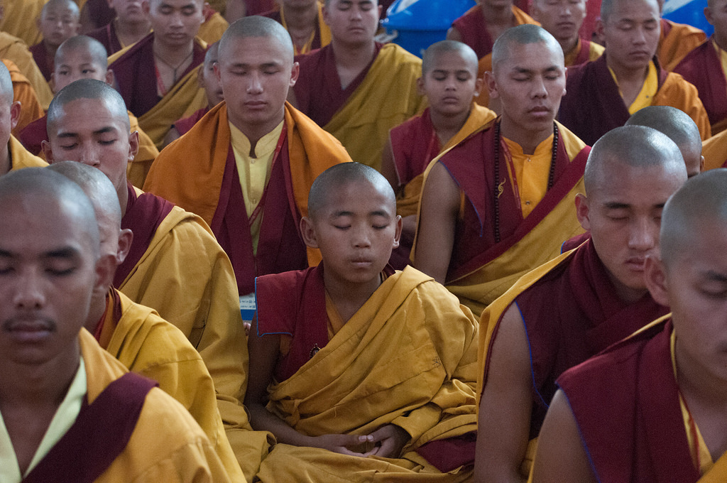 If we were to live for fifty years, we would spend twenty-five of those asleep. Of the twenty-five years remaining, until you’re twenty years old, you don’t have the maturity to practise like that. So once we have reached maturity, that leaves just five years to practise. We spend a quarter of that time acquiring food and clothing. So, of that remaining five years we have only three quarters left to either practise the Dharma or do worldly things. And during the remaining time, if we think that first we are going to accomplish all we need for this life and then we will accomplish everything we need for the next life, there will not be enough time.