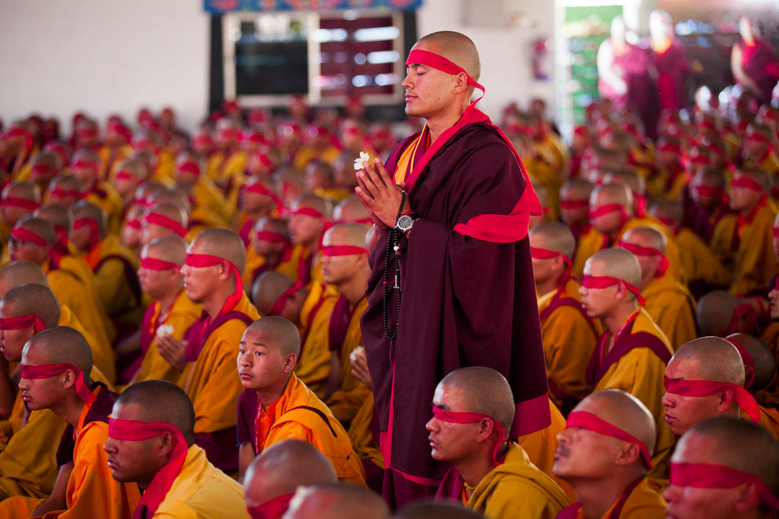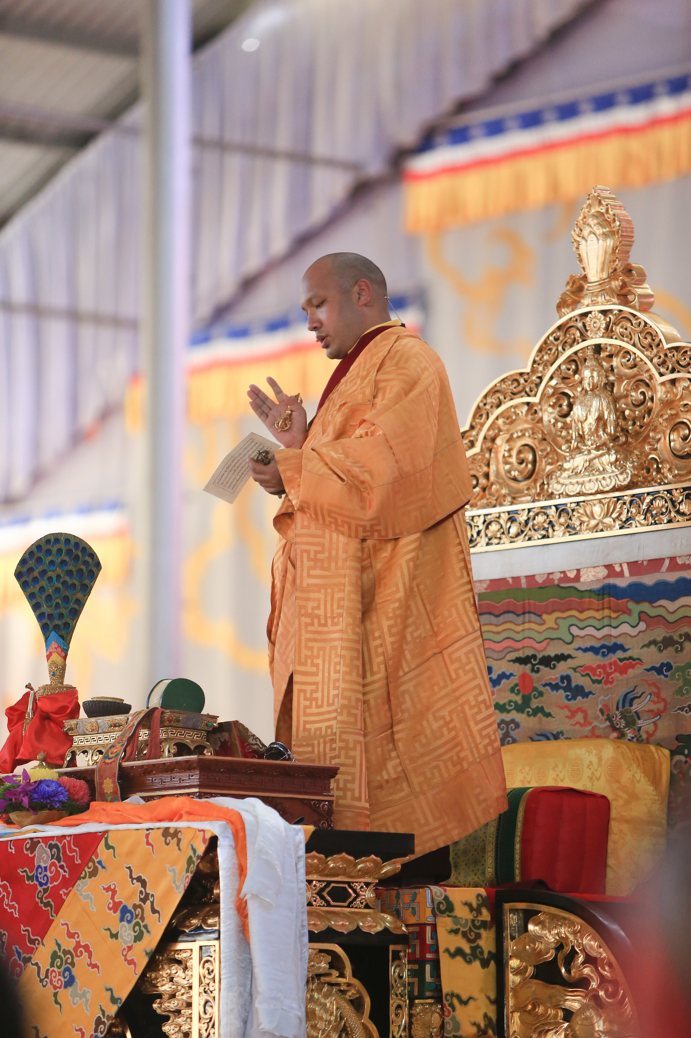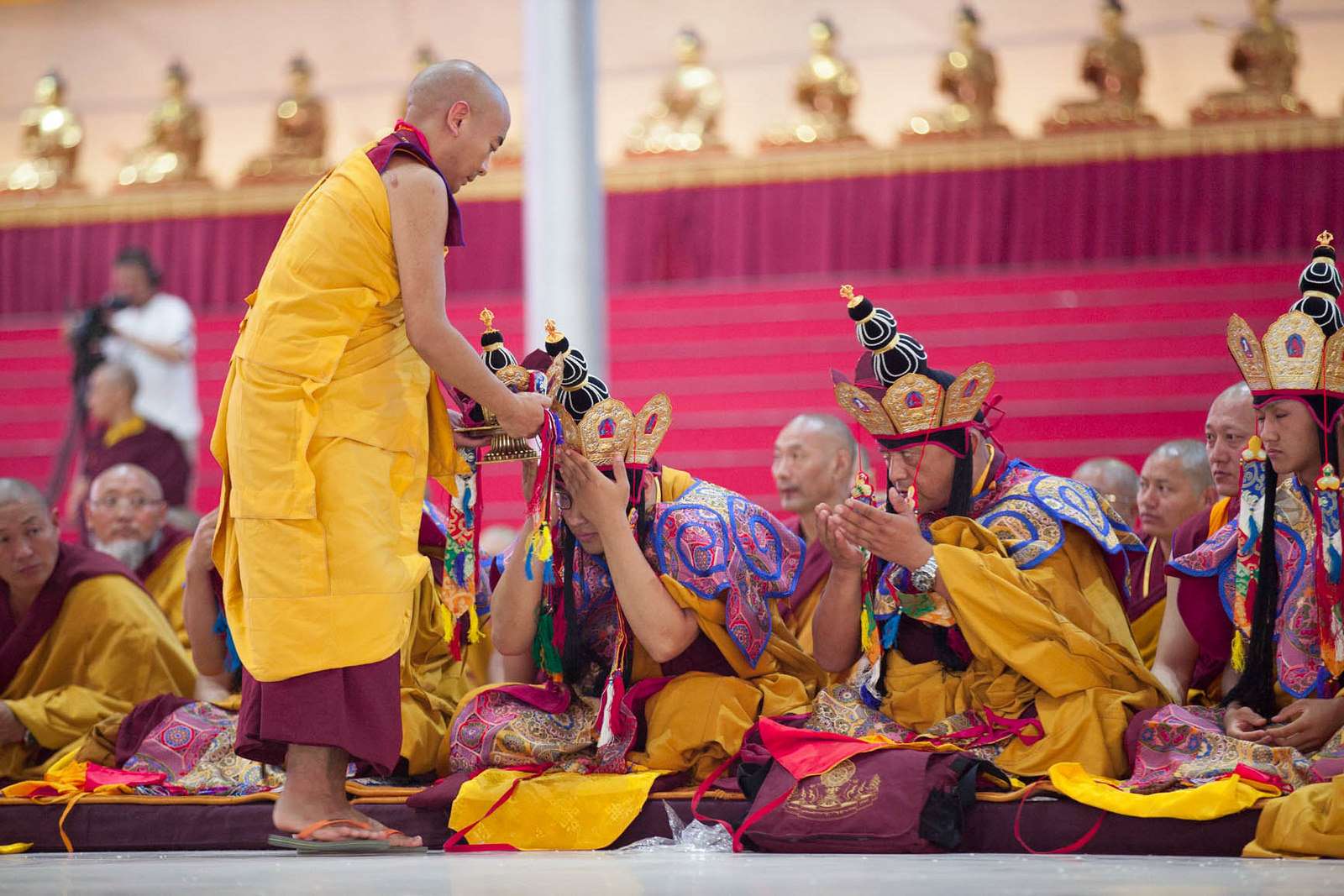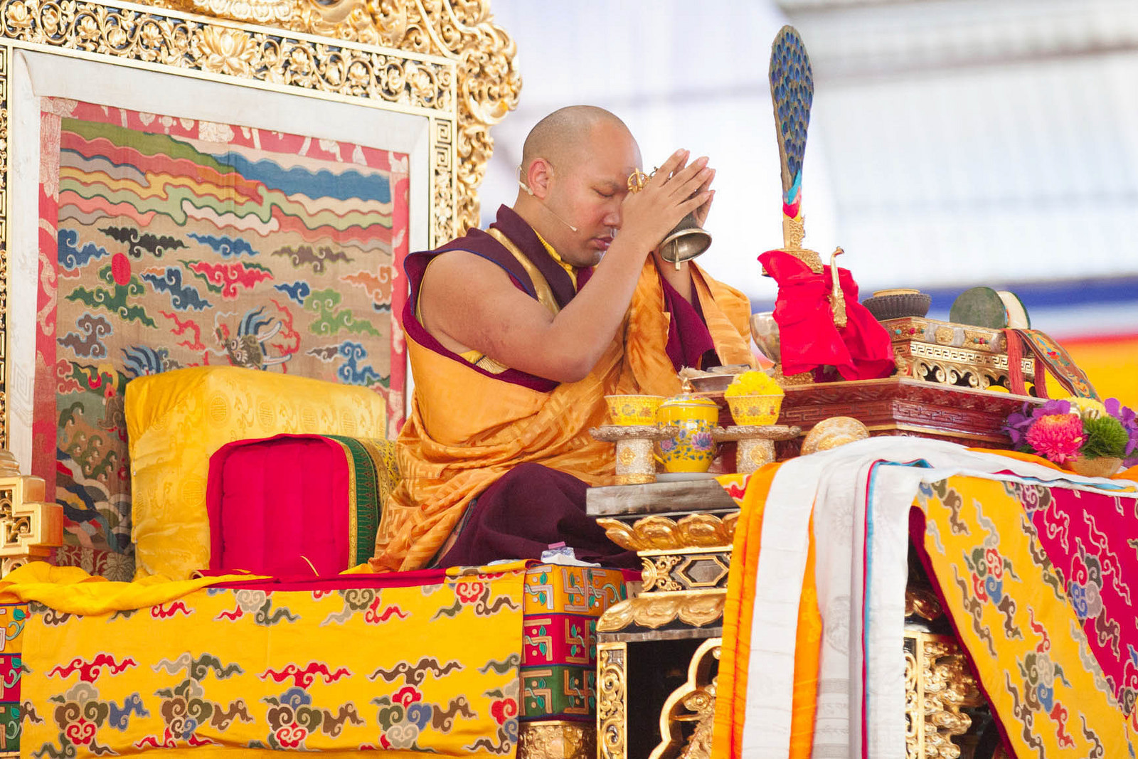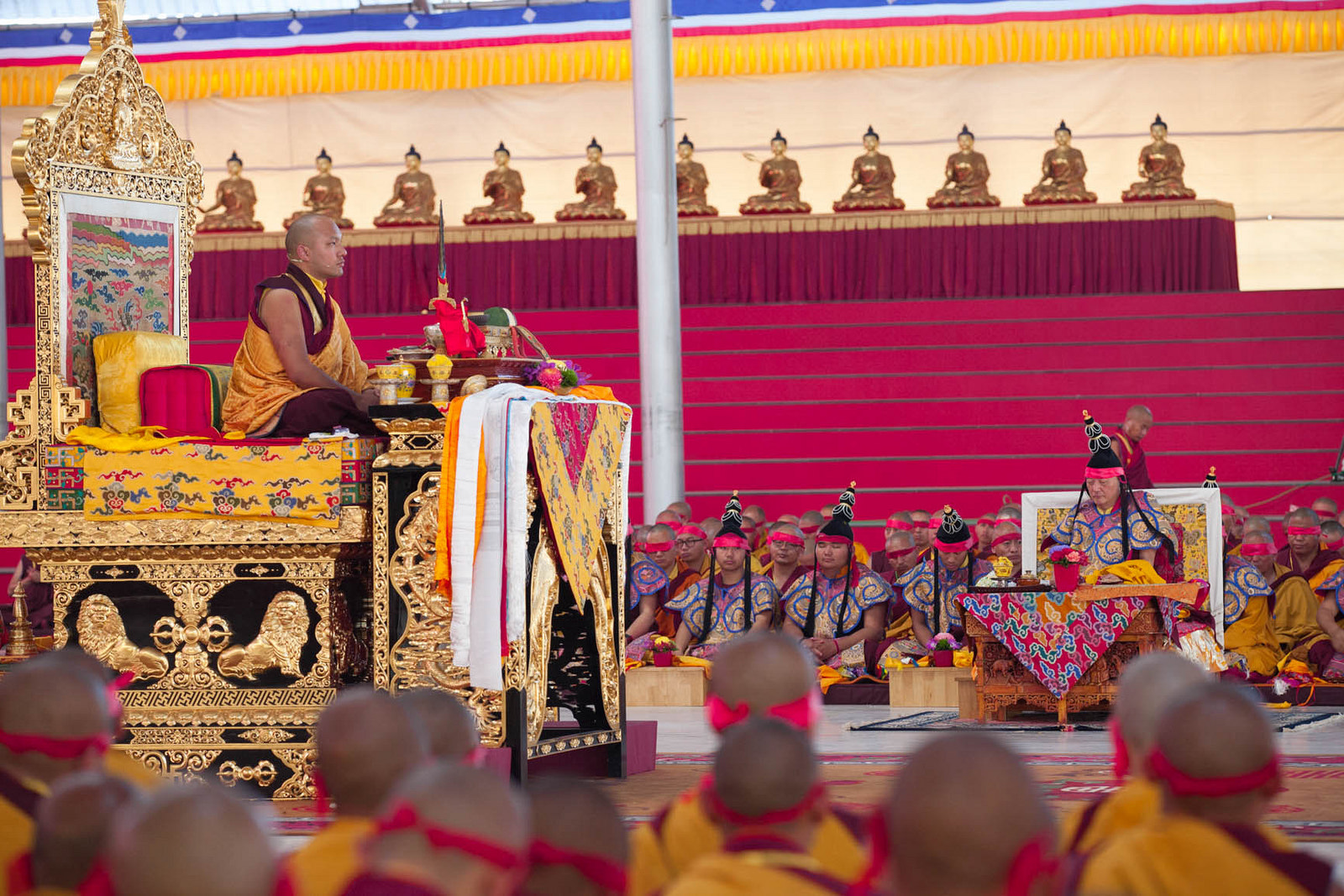 According to the tradition, red blindfolds are placed covering the eyes entirely. At this moment, His Holiness delivered some essential teachings on the path of Secret Mantra.