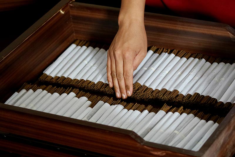 The incense was laid carefully in wooden boxes and placed on the roof to dry.