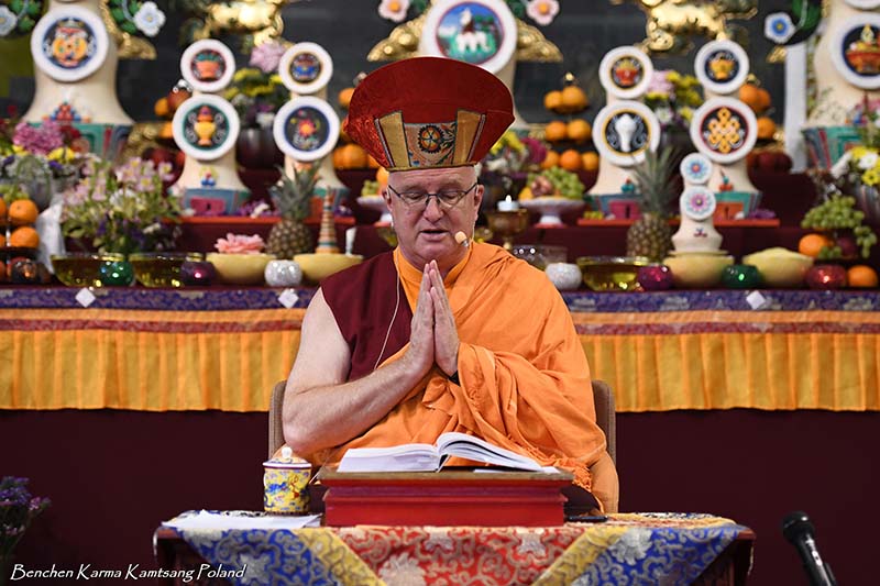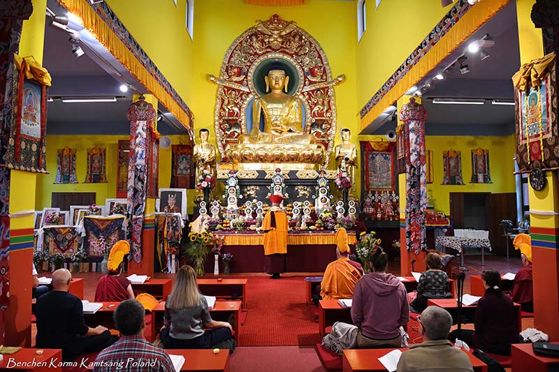 Due to the pandemic situation, no Tibetan Lamas could come to Poland this year. Also, according to epidemiological rules, only a limited number of people could stay in the temple. However, the head of Benchen Monastery, His Eminence Drubwang Sangye Nyenpa Rinpoche, advised us to continue our yearly practice of holding a Kagyu Monlam, even with a small assembly. Rinpoche said that the number of people is not important; what is important is to maintain the continuity of practice. Also Ven. Sangter Tulku Rinpoche, who has most often presided over our Kagyu Monlam in previous years, encouraged us very strongly to maintain this activity.
