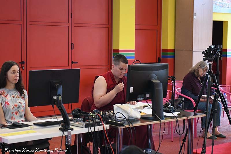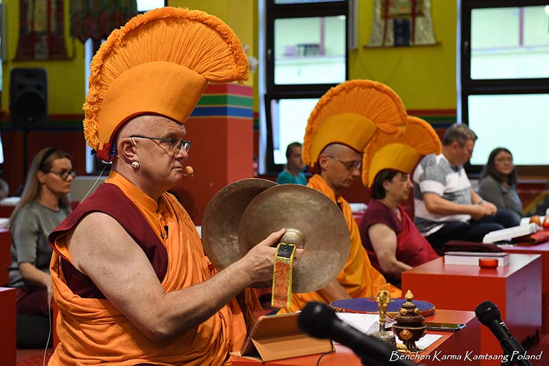 As is the tradition, on the first day we held a solemn procession with a portrait of His Holiness the Karmapa, Ogyen Trinley Dorje. After circumambulation of the stupa and the temple, the picture was placed on His Holiness’s throne, and Polish lamas offered a Mandala of the Universe and the symbols of Awakened Body, Speech, Mind, Qualities and Activity to the Gyalwang Karmapa - the source of all blessing and inspiration, and the supreme head of our lineage.