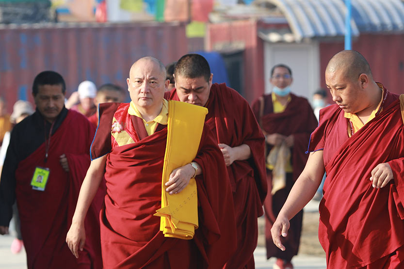 ཕྱི་ལོ་ ༢༠༡༨ ཕྱི་ཟླ་ ༢ ཚེས་ ༢༤ སྔ་དྲོའི་ཆར་སྐྱབས་མགོན་༸རྒྱལ་བའི་རྒྱལ་ཚབ་ཆེན་པོ་ཉིད་སྔར་རྒྱུན་བཞིན་སྤོས་སྣ་དང་རྒྱ་གླིང་བཅས་སྨོན་ལམ་གྱི་གར་སྟེགས་ཀྱི་བཞུགས་ཁྲིར་འཁོད་རྗེས། དད་ལྡན་སློབ་ཚོགས་སྐྱ་སེར་ཕོ་མོ་སྟོང་ཕྲག་དུ་མ་ནས་སྒོ་གསུམ་གུས་པ་དང་བཅས་ཕྱག་ཕུལ་ཞིང་། དེ་ནས་དབུ་མཛད་ཆེན་པོས་དྭགས་པོ་བཀའ་བརྒྱུད་སྤྱིའི་གསོལ་འདེབས་རྡོ་རྗེ་འཆང་ཐུང་མའི་ཞལ་འདོན་དབུ་བཙུགས་ཤིང་མཎྜལ་འདེགས་འབུལ་ཞུས། ༸སྐྱབས་རྗེ་རིན་པོ་ཆེ་མཆོག་ནས་ཕྱག་ཆེན་སྨོན་ལམ་གྱི་བཀའ་ཁྲིད་ཉིན་སྔོན་མའི་མཚམས་ནས་མར་མུ་མཐུད་ནས་གསུངས།