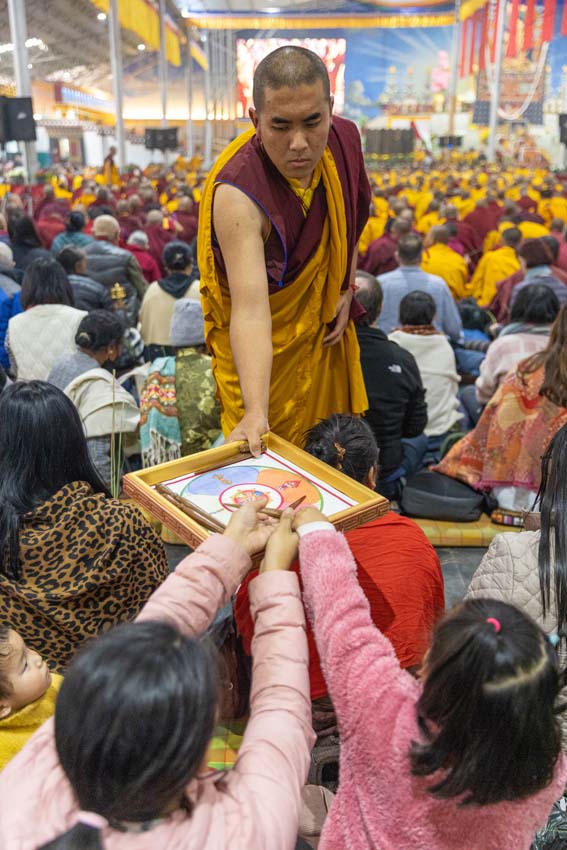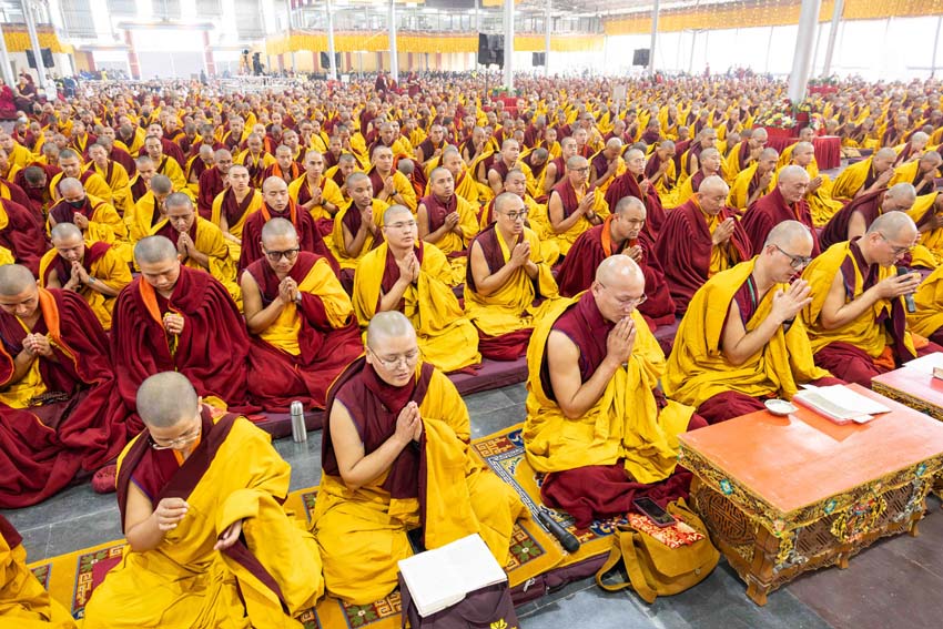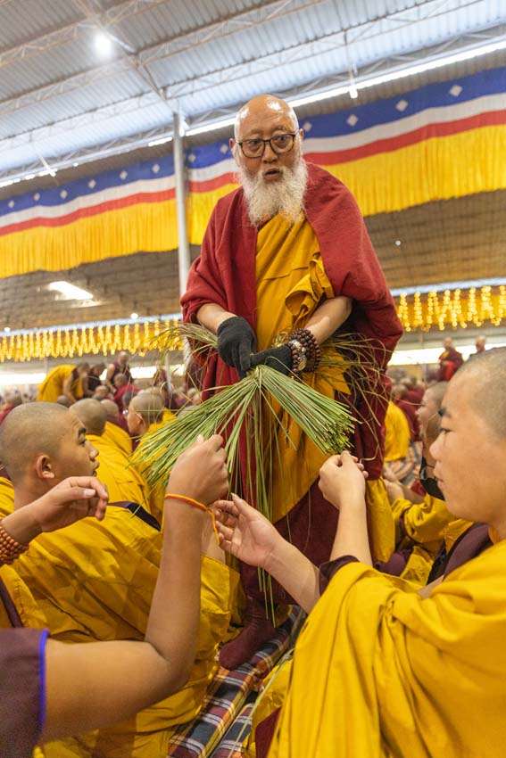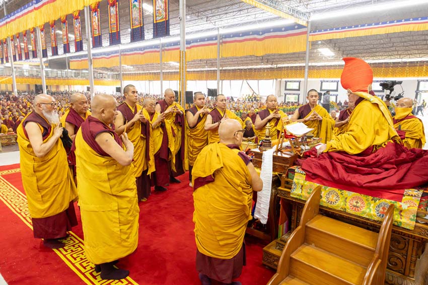ཕྱི་ལོ་ ༢༠༢༥ ཟླ་བ་ ༡༢ ཚེས་ ༢༤ ཉིན། བསྐལ་པ་བཟང་པོ་འདིའི་སངས་རྒྱས་སྟོང་རྩ་གཉིས་མངོན་པར་འཚང་རྒྱ་བའི་གནས་མཆོག་རྡོར་གདན་བྱང་ཆུབ་མཆོད་རྟེན་ཆེན་མོའི་ཉེ་འགྲམ་རྒྱལ་ཡོངས་བཀའ་བརྒྱུད་སྨོན་ལམ་ཆེན་མོའི་ཆོས་ར་ཆེན་མོར། ༧སྐྱབས་མགོན་༧རྒྱལ་བའི་རྒྱལ་ཚབ་དྲུང་གོ་ཤྲི་ཆེན་པོ་མཆོག་ནས། རྒྱ་བལ་འབྲུག་གསུམ་གཙོས་པའི་འཛམ་གླིང་ཡུལ་གྲུ་དུ་མ་ནས་ཕེབས་པའི་དད་ལྡན་སེར་སྐྱ་སྟོང་ཕྲག་དུ་མར་སྤྱོད་རྒྱུད་རྣམ་སྣང་མངོན་བྱང་གི་དབང་ལ་སྟ་དངོས་གཉིས་ལས་སྟ་གོན་གྱི་རིམ་པ་རྣམས་ལེགས་པར་བསྩལ་གནང་།