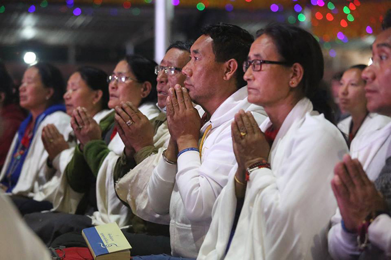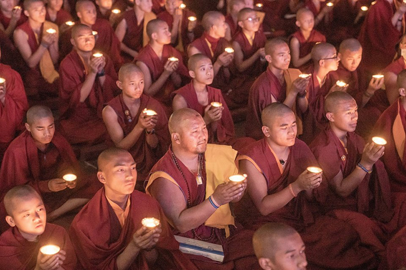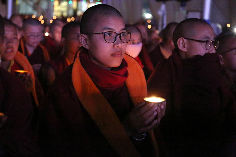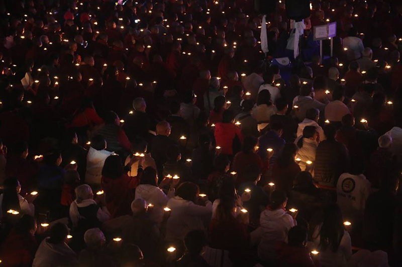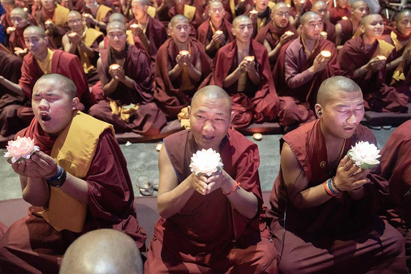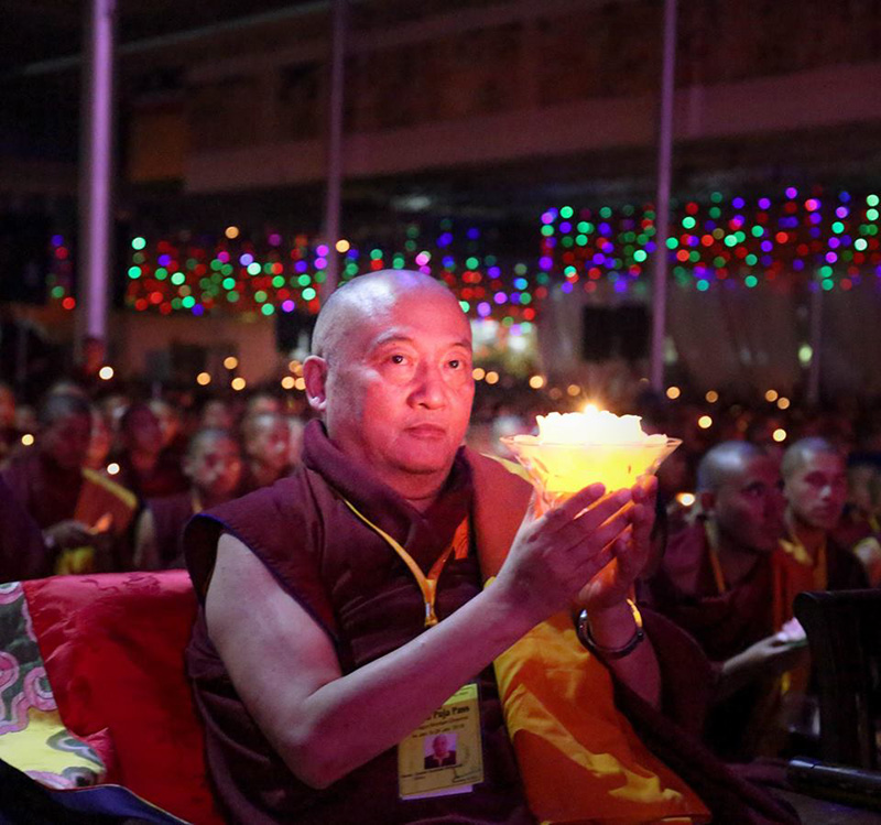 ༢༠༽ ཚོགས་ཞུགས་འདུས་པ་ཡོངས་ནས་མར་མེའི་མཆོད་སྤྲིན་འདི་ཉིད་ཀྱིས་མ་རིག་མུན་པ་སེལ་བའི་སྨོན་འདུན་བགྱིད་བཞིན་པ།