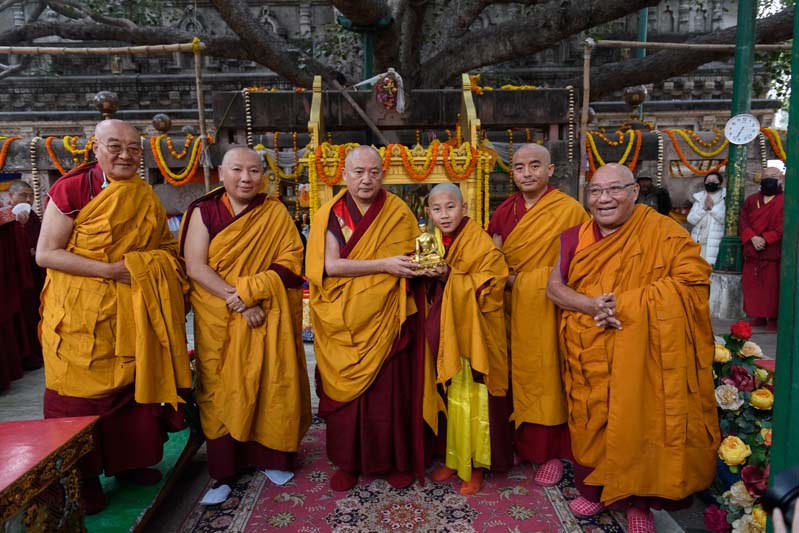 這天稍早,凌晨兩點,菩提迦耶的夜色還深,祈願法會期間暫住在嘠千舍(Garchen House)的13歲波卡轉世仁波切,已經起床準備。