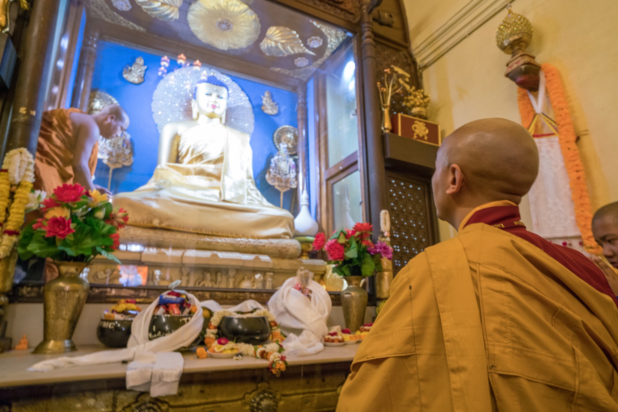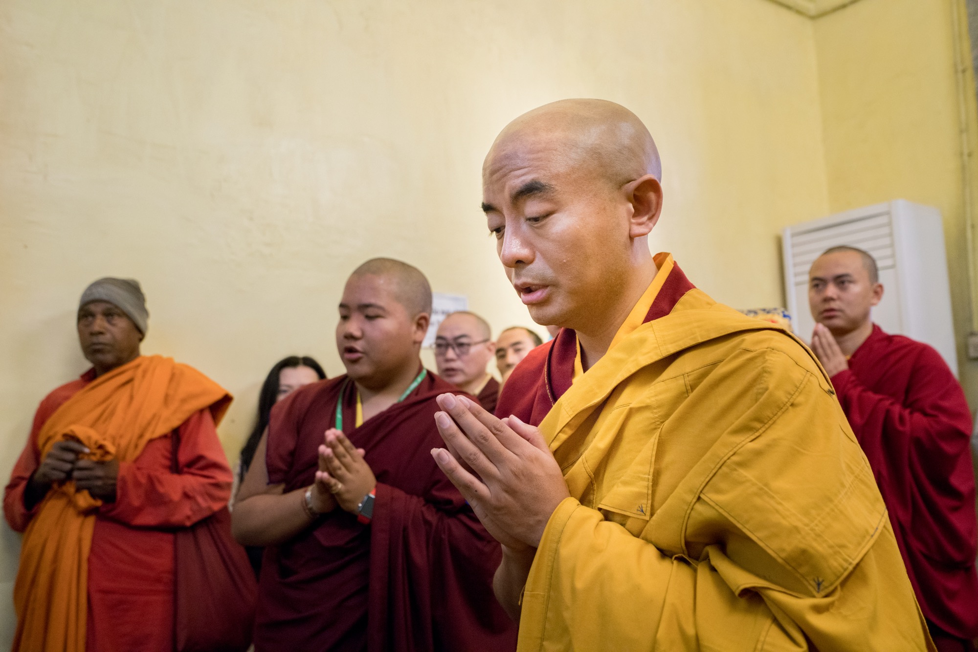噶舉大祈願法會正行第二天,明就仁波切在竹奔德千仁波切的陪同下,前往正覺大塔供佛,祈請佛恩加被,一切吉祥如意。法會期間,每日在正覺大塔供佛,儼然已為噶舉大祈願法會的傳統;今年由國師嘉察仁波切和明就仁波切輪流前往供佛。