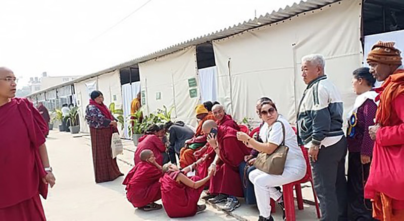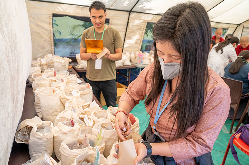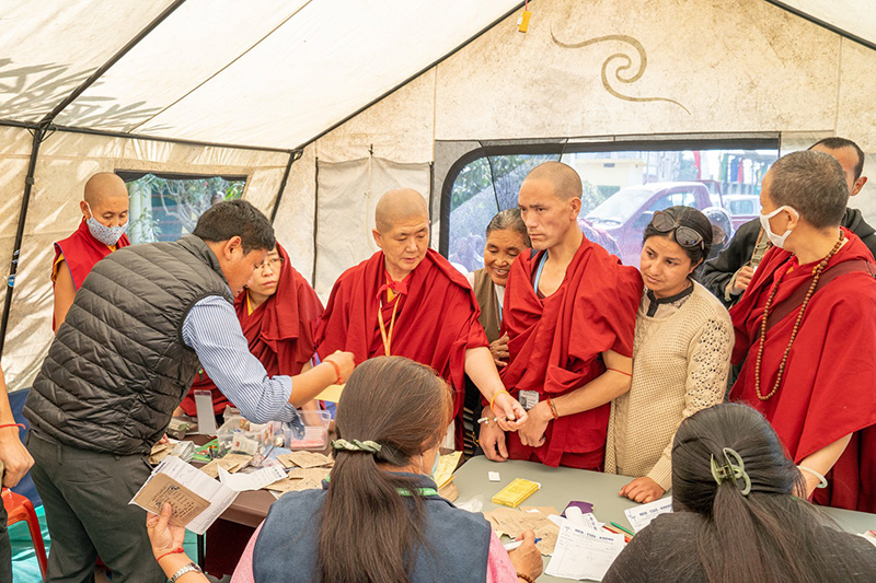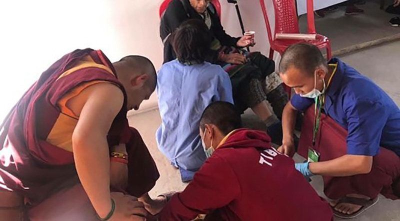 噶舉大祈願法會每年都提供藏醫診療,今年的地點設在祈願會場後方的帳棚內,由五位藏醫及其他助手為民眾提供免費的診斷和治療。