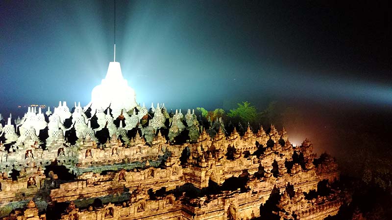 The grand finale of the 9th Indonesian Kagyu Monlam was held in the early evening with a lamp puja (Marme Monlam) and pradaksina and recitation of the Karmapa Khenno mantra around the Borobudur Temple.